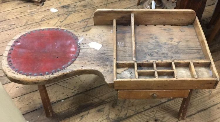 Сапожник садился на кожаную подушку, лицом к столику, где выполнялся ремонт обуви.