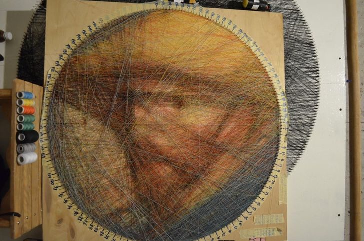 Создание картин из натянутых нитей. На этой портрет Ван-Гога.
