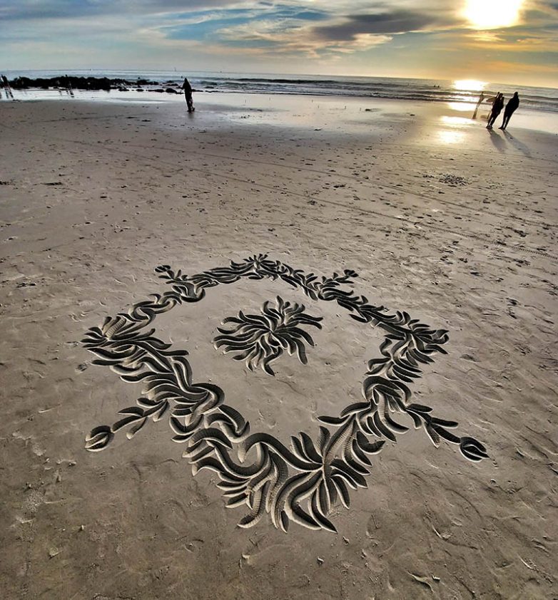 Это было сделано граблями на песке. Выдержке того, кто это сделал, можно только позавидовать.