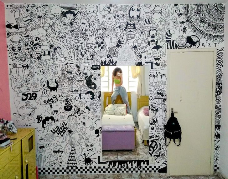 Рисунок выполнен из липкой ленты. Это часть картины «Сотворение Адама».
