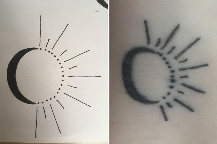 «Эскиз, который я нарисовал для своей татуировки, по сравнению с тем, что я получил. У этого тату-салона были сотни отличных отзывов!»