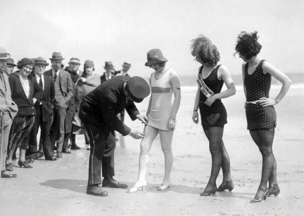 Раньше приличные женщины могли заходить в море только с помощью купальных машин — деревянных кабинок на колесах с люком в полу и лестницей в море. Эти фургоны запрягались лошадьми и доставляли дам прямиком в воду. Главным образом такие машины служили для того, чтобы женщины могли спокойно переодеться внутри без посторонних глаз.