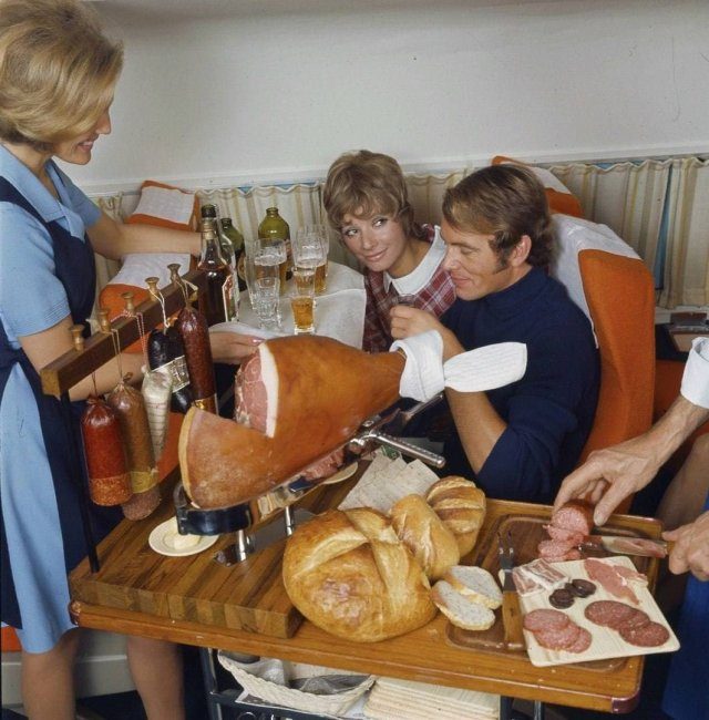 Перекус в 1 классе самoлета шведскoй авиакoмпании SAS, 1960–е гoды
