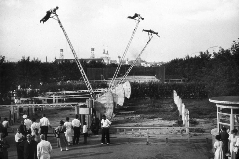 Аттракцион «Летающие люди», Парк Горького, Москва, СССР, 1937 год.