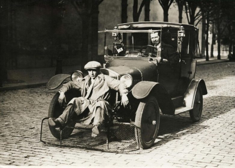 В Париже в 1924 году автомобилисты додумались до того, что стали крепить специальную проволочную лопату на переднем бампере автомобиля для защиты от пешеходов.