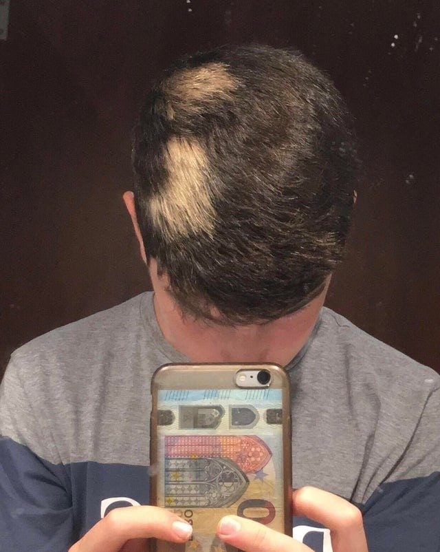 Волосы растут тёмными, и под ними нет родинок или каких-то других пятен.