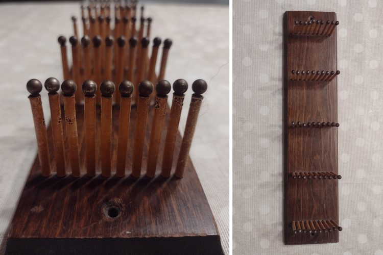 Вопрос: «Металлические штырьки с круглыми головками и вращающимися трубочками в деревянной доске. Скорее всего, антиквариат. Что такое?»