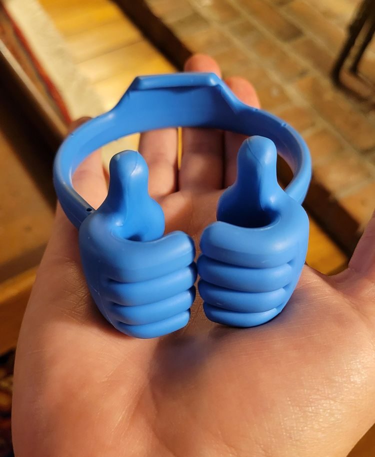 Вопрос: «Небольшой круглый зажим с большими пальцами вверх. Растягивается, но сохраняет круглую форму»