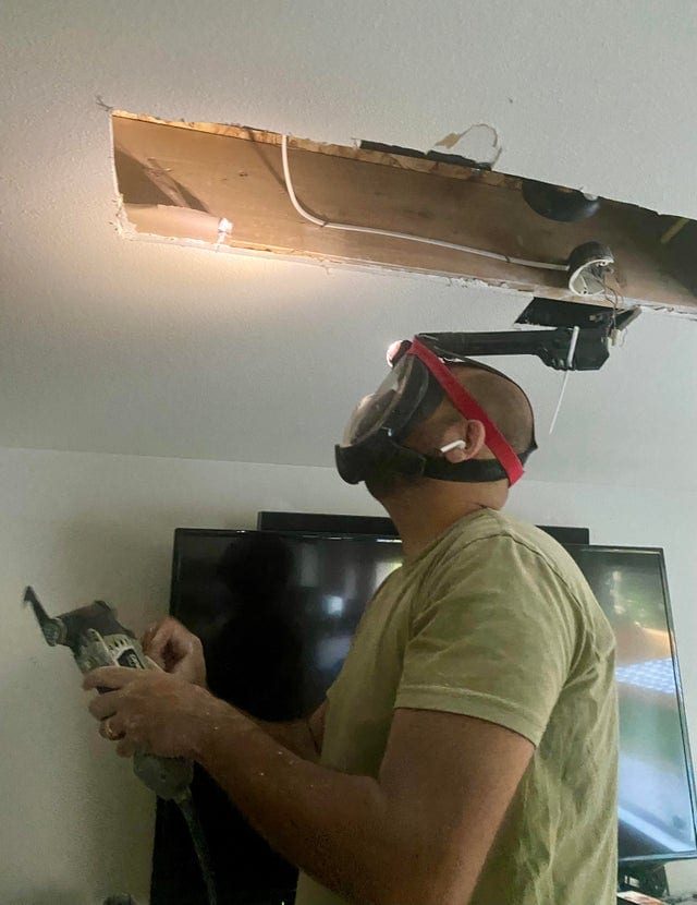 Использовал маску с трубкой для плавания, чтобы защитить глаза и лёгкие от пыли