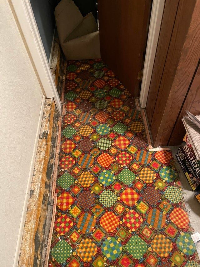 Вот таким было напольное покрытие в этом доме в 1970-х. Отлично, кстати, сохранилось под ковролином.