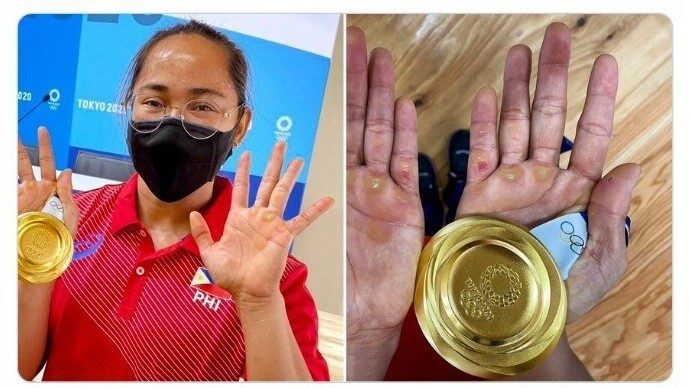 Руки штангистки Хиделин Диаз — первой золотой медалистки филиппинской сборной. По словам Диаз, это пустяки — травм, которые не видны, у нее гораздо больше