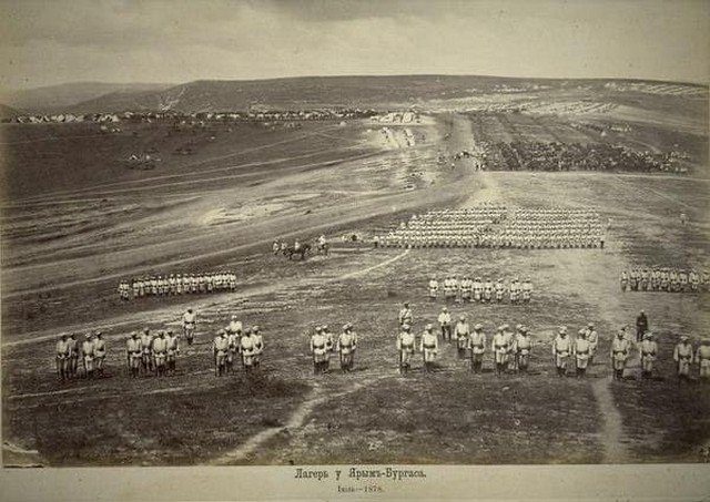 Русские войска на построении в лагере у деревни Ярым-Бургас. Балканы. Русско-турецкая война. Июль 1878г.