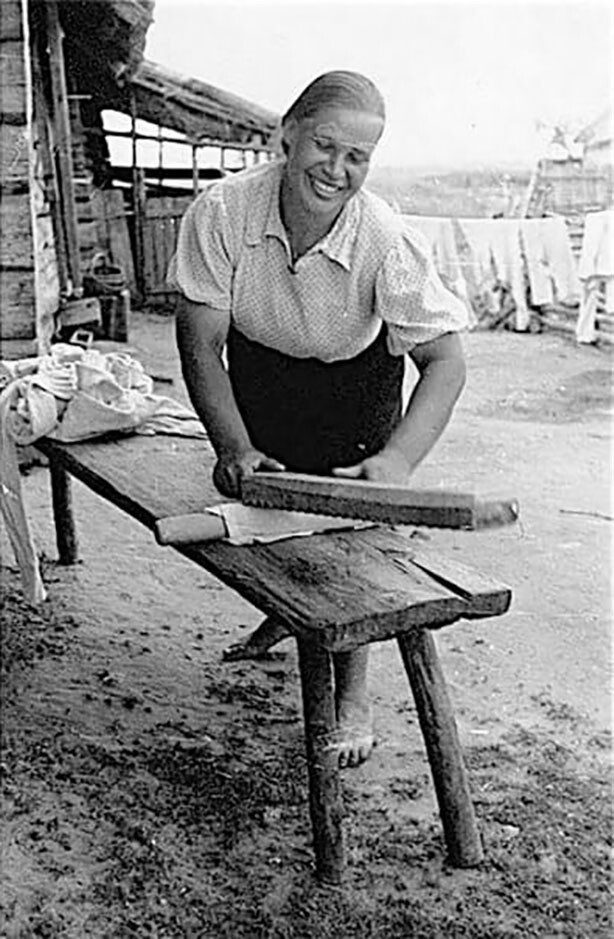 Глажка белья рубелём, СССР, 1940-е