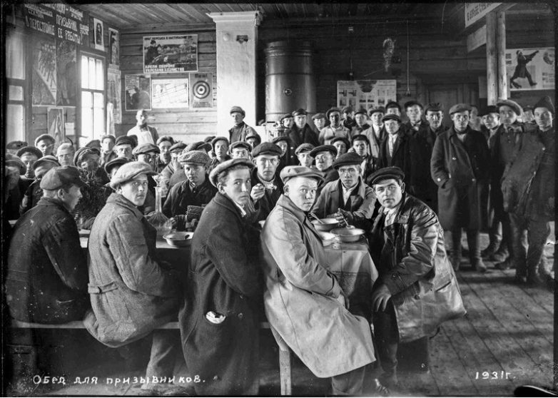 Обед для призывников. Фотограф Михаил Смодор. Ивановская область, город Галич. 1931 год