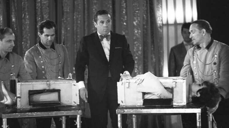 Выступление иллюзиониста Игоря Эмильевич Кио. Трюк «Распиливание». 1969 год