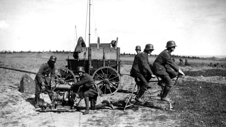 Германия, Первая мировая, полевая радиостанция с двумя видами автономного электропитания. А может, и с тремя, еще и с гальваническими батареями внутри этой телеги.