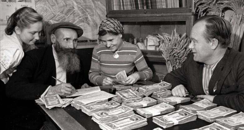 Выдача денежного аванса по отработанным трудодням. Колхоз «Красный октябрь». 1947 год