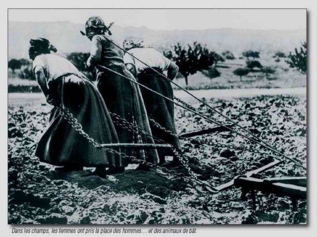 Лошади и мужики на войне, бабы пашут на себе, Франция, 1917 год.