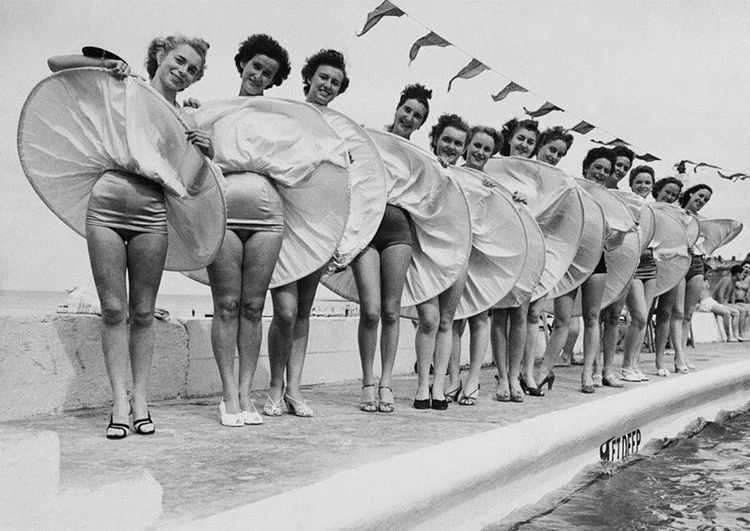 Участницы конкурса «Красивые ножки» должны были надевать наволочки, закрывающие всё, кроме ног, чтобы судьи могли их оценить. Парк развлечений Палисейдс, Нью-Джерси, 1951 год