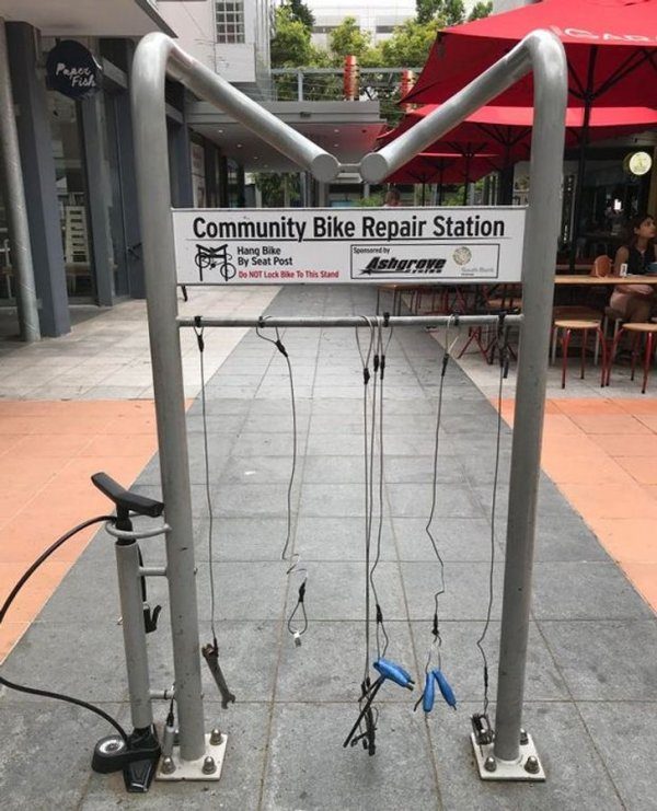 В городе Брисбен есть общественные станции ремонта велосипедов