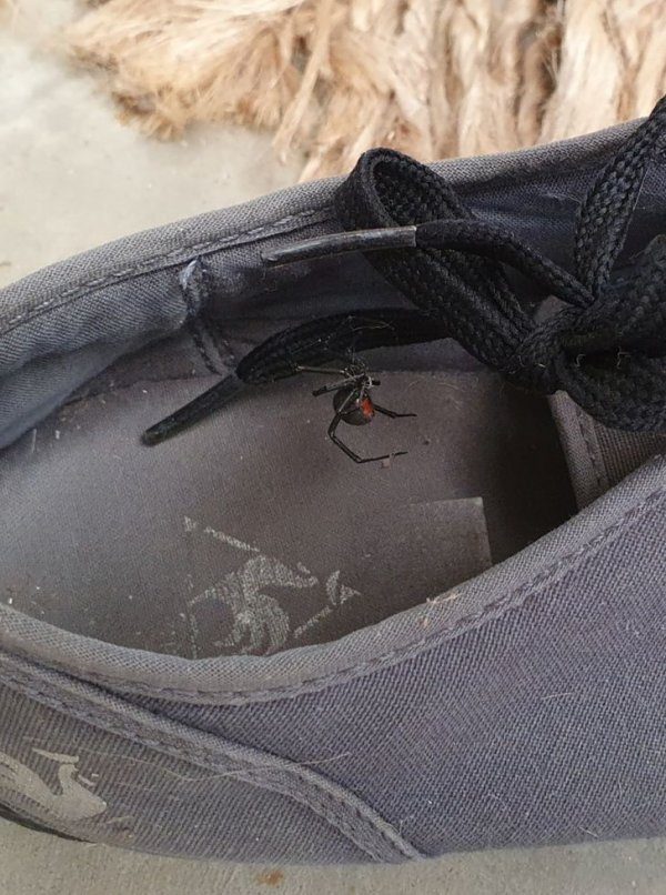 Подборка была бы неполной без фотографий о пауках. Автор фото просто оставил обувь на улице на одну ночь