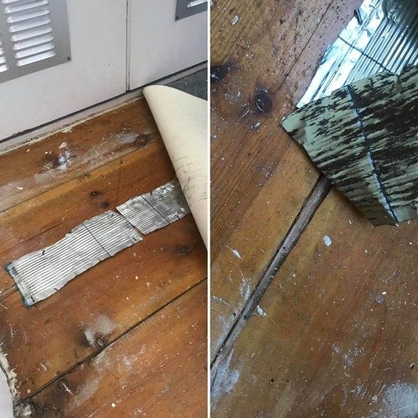 16. «Бывший владелец моего дома заделал брешь между половицами, прибив к ним сплющенные консервные банки»