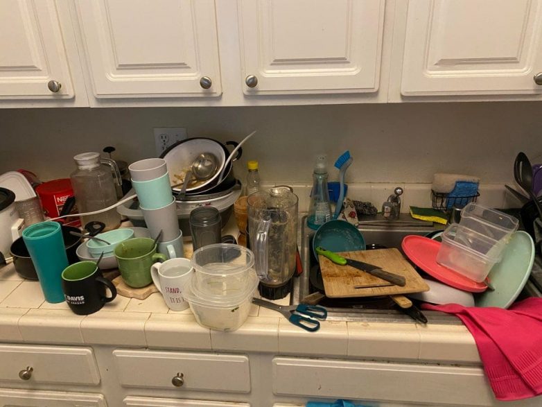 Сосед выбросил посуду, потому что ему лень её мыть. Всю посуду купила я!