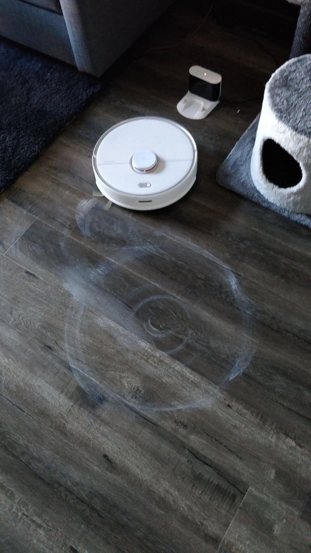 Из-за сломанного колеса робот-пылесос застрял и нарисовал свой автопортрет