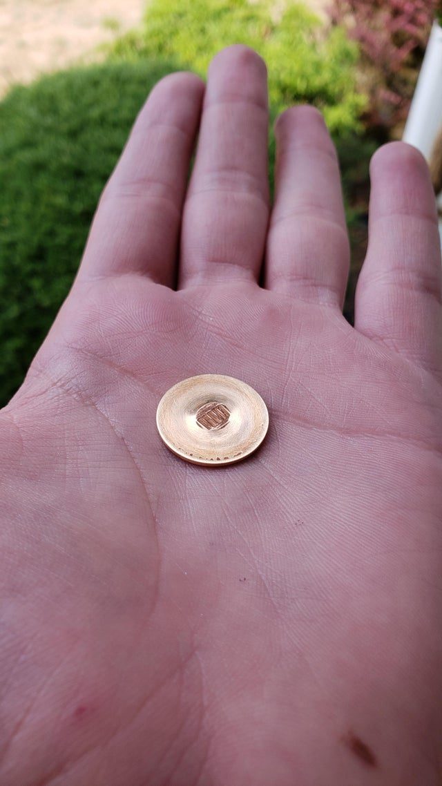 Монетка из стиралки- старые японские 5 йен, они изначально с дыркой.