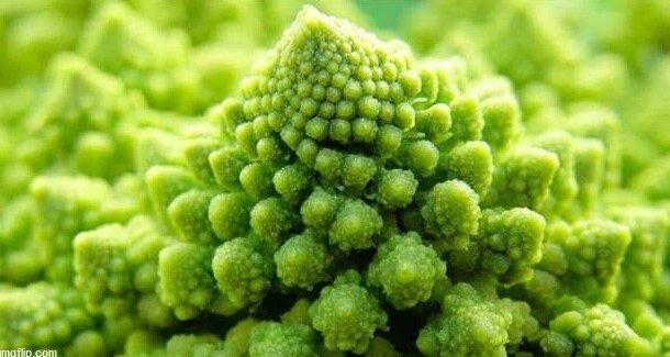 Капуста «романеско», или «римская брокколи», считается гибридом брокколи и цветной капусты