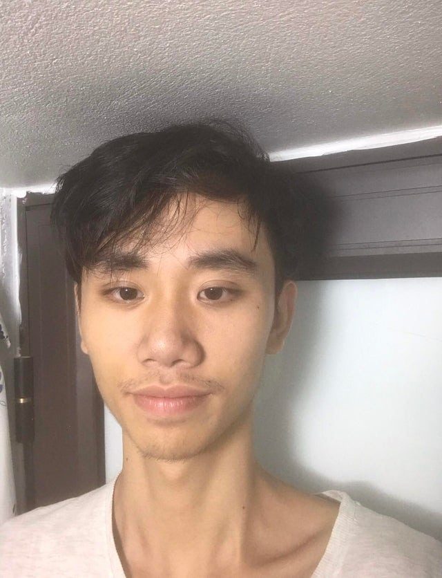 В ванной моего двоюродного брата. Он ненамного ниже меня, не знаю, почему он решил сделать её такой маленькой