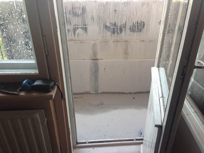 “Последствия ремонта соседей сверху. В итоге они отмывали мой балкон два часа.”