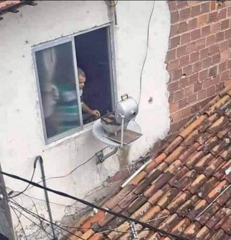 Какое оригинальное решение для барбекю прямо из окна квартиры