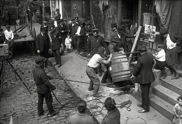 Изъятие вина по постановлению суда на Черри-стрит, 38. 27 апреля 1921 г., Нью-Йорк, штат Нью-Йорк.