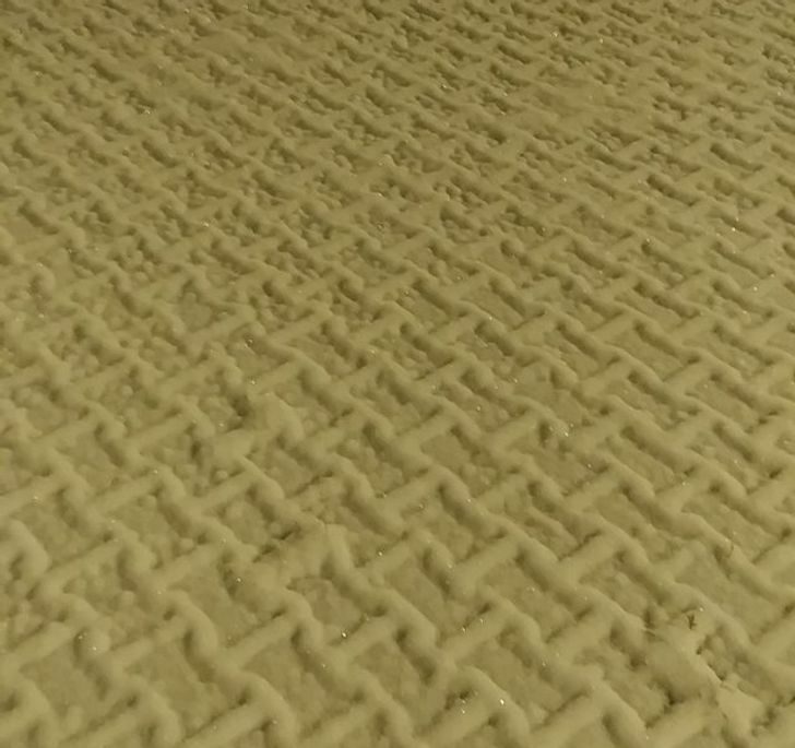 Это не вафля, это снег постепенно тает на кирпичной кладке