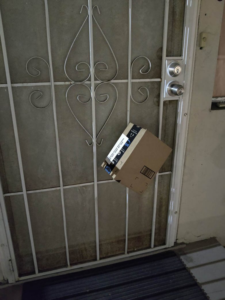 “Посылку поставили прямо перед дверью, поэтому она снесла горшок с цветком, когда я открыл дверь”
