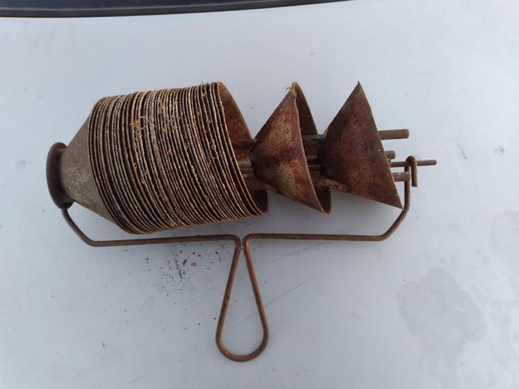 2. “Нашел эти штуки в лесу во время туристического похода. Ручка из дерева и металлический каркас на который натянута проволока.”