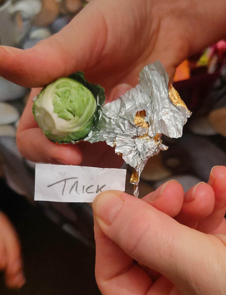 “Брат показывает свой хэллоуинский улов. Парень получил ценный жизненный урок.”