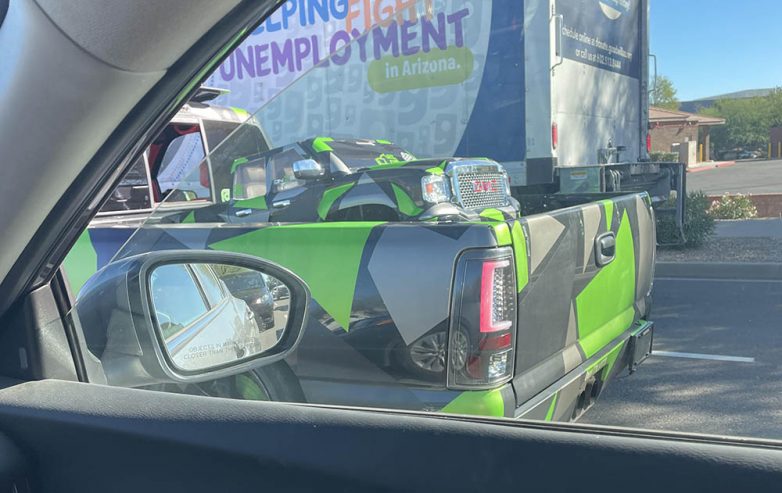 Большой пикап везет маленький пикапчик-близнец
