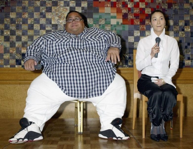 Борец сумо на пенсии Конишики Ясокичи с женой