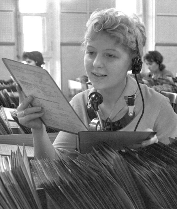 Телефонистка Справочно-информационной службы города Москвы (тел. 09). Фото Н. Максимова, 1962 год