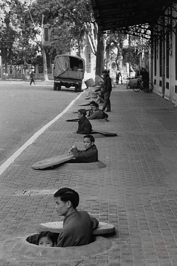 Жители Ханоя прячутся во время воздушной тревоги. Северный Вьетнам, 1967 год