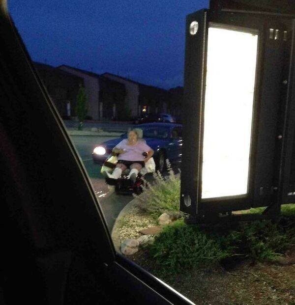 «Позади меня — необычное транспортное средство, которое направляется в „Макдоналдсе“ к окошку для водителей