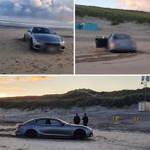 Туристы-лихачи решили погонять по пляжу на арендованном Mazeratti и теперь не знают, как его вытащить