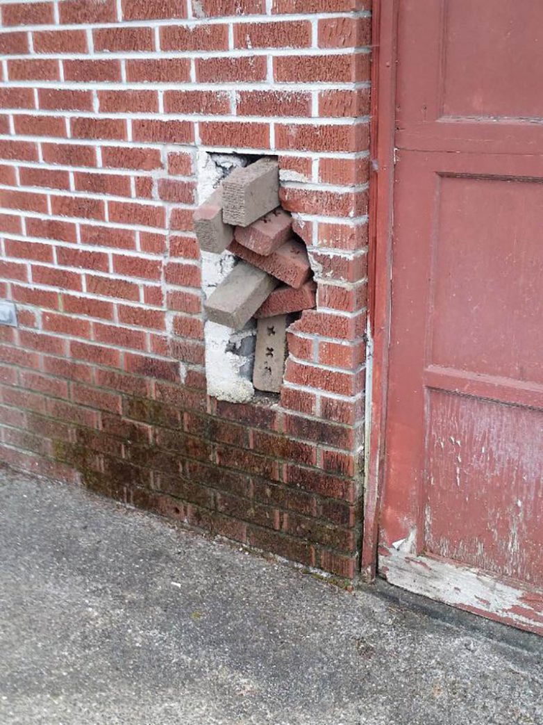 Стену кирпичом заложили, насяльника. Дыры огромной больше нет, насяльника.