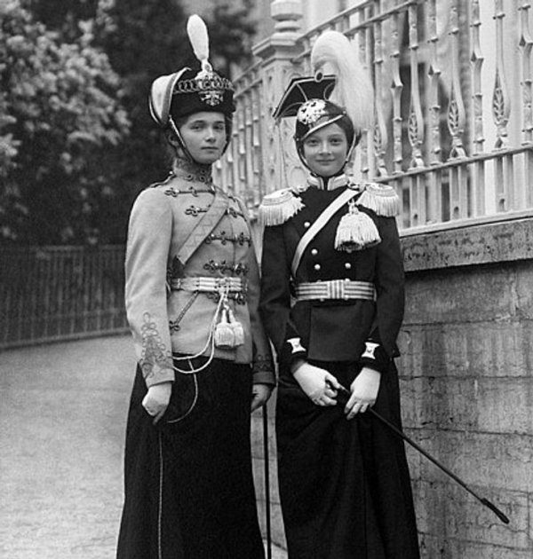 Одетые в гусарскую форму княжны Ольга Николаевна и Татьяна Николаевна, 1913 год