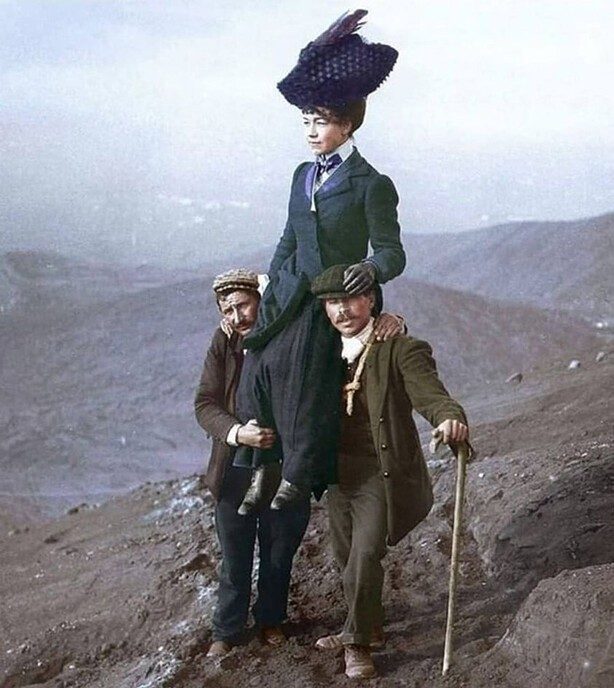 Горные гиды несут дамочку, возжелавшую взойти на Везувий в 1910 году