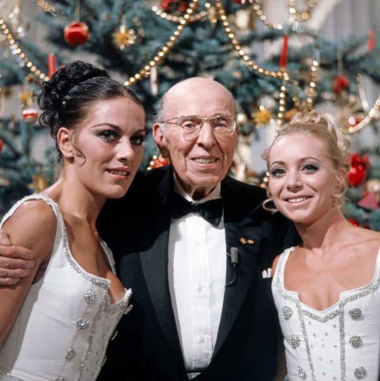 Декабрь 1971 года. Австрийский композитор и дирижер Роберт Штольц с артистками балета на съемках рождественской программы.