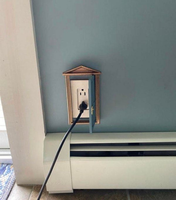 Просто обычная розетка, которая скрывается за маленькой дверцей
