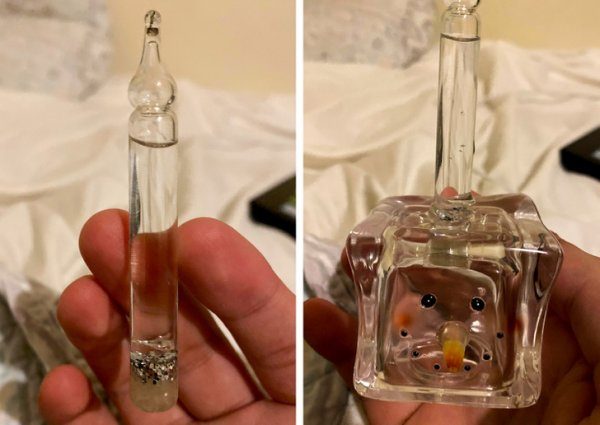 Блестки кружились сами по себе, когда я покупал это. Выглядело так, будто пузырьки воздуха толкают их вверх, но колба герметична, насколько я могу судить